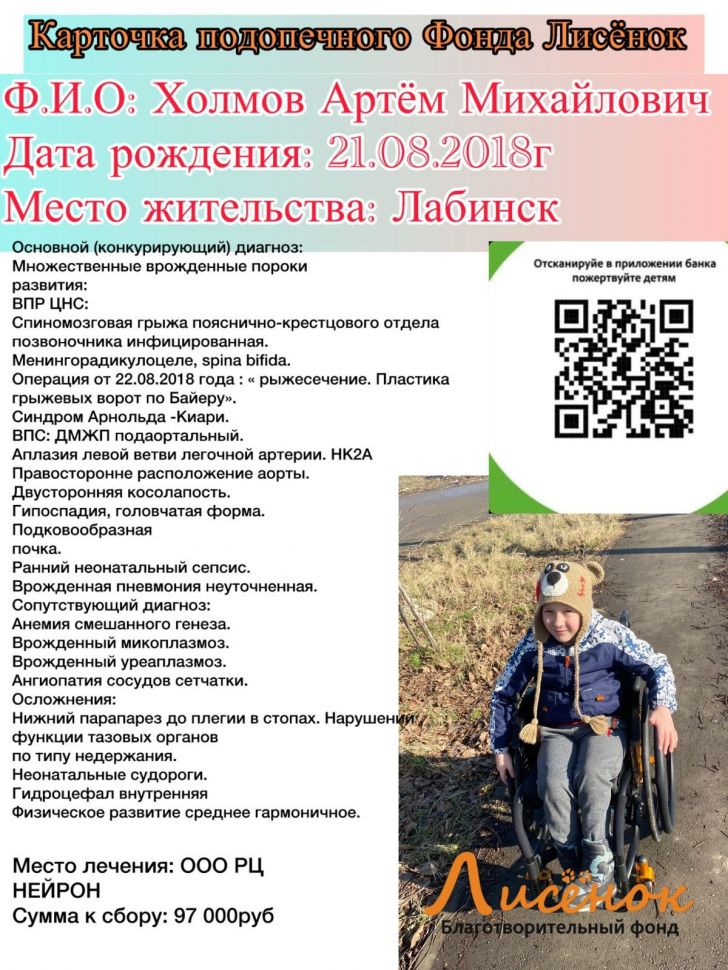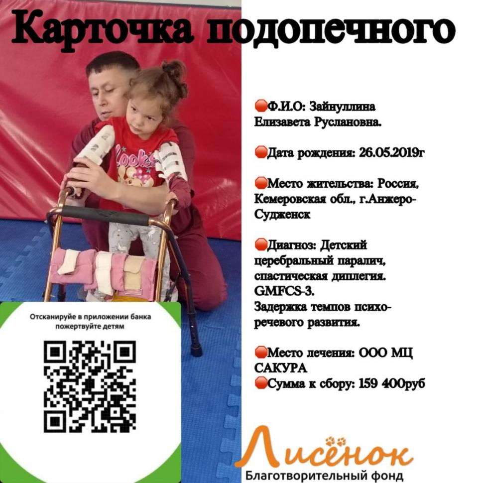 Живём в городе Анжеро-Судженск Кемеровской области у нас нет хороших специалистов и клиник реабилитации, поэтому приходится искать за пределами города, а это очень дорого, т.к. у нас многодетная семья, ещё двое детей школьников и ребенок на инвалидности, которому необходима реабилитация каждые 2 месяца. В настоящее время мы находимся в трудной жизненной ситуации, взят не один кредит для восстановления дочки.