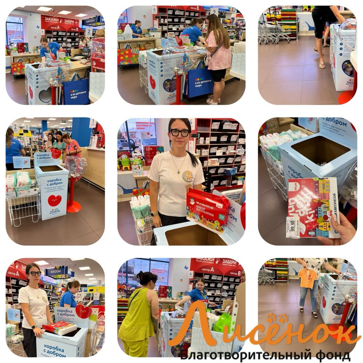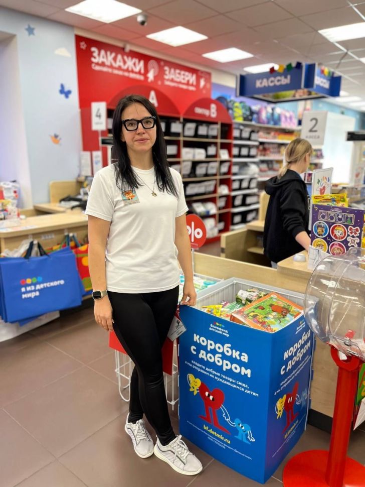 Это наша совместная акция с благотворительным фондом «Детский мир» и покупателями магазина.
