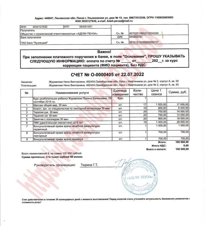 Место лечения: ООО Адели Пенза г.Пенза