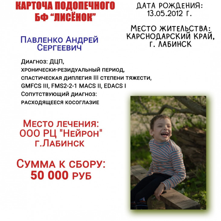 Сбор открыты на оплату реабилитации.